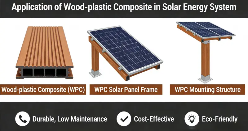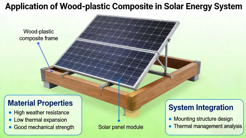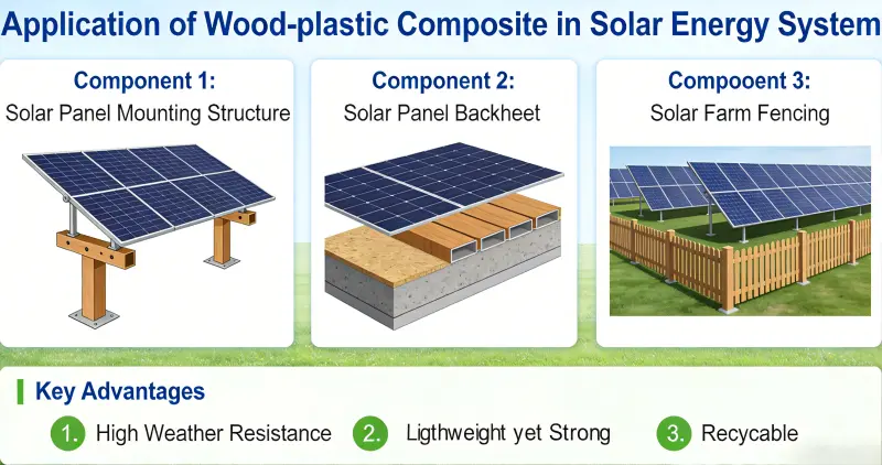 Το σύνθετο ξύλο-πλαστικό (WPC) έχει αναδειχθεί ως βασικό υλικό σε συστήματα ηλιακής ενέργειας, συμπεριλαμβανομένων των φωτοβολταϊκών (PV), των πλωτών σταθμών παραγωγής ενέργειας, της ενσωμάτωσης φωτοβολταϊκών κτιρίων και της αποθήκευσης συγκεντρωμένης ηλιακής ενέργειας (CSP), λόγω των ιδιοτήτων φιλικών προς το περιβάλλον, ανθεκτικών στις καιρικές συνθήκες, ελαφρού βάρους, χαμηλής συντήρησης και εύκολης επεξεργασίας. Αντικαθιστά σταδιακά τα παραδοσιακά υλικά από μέταλλο και ξύλο.